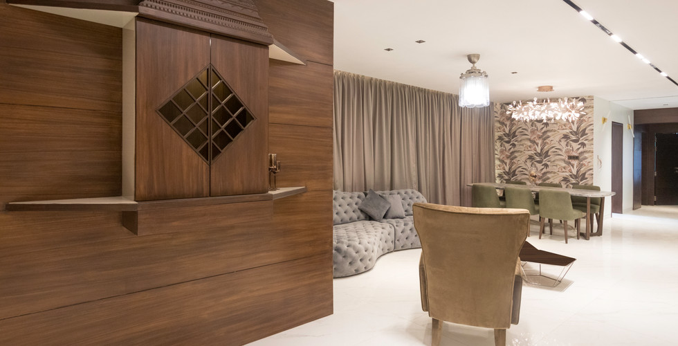 The bedrooms portray an effective play of textures, patterns, intricate details and some delightful illumination techniques. The spaces are planned in a way to make them seem clean, sharp and bigger than they actually are. A dynamic material palette of wood, glass, and metal is well balanced by well curated soft furnishings in sync with the color theme of each room.