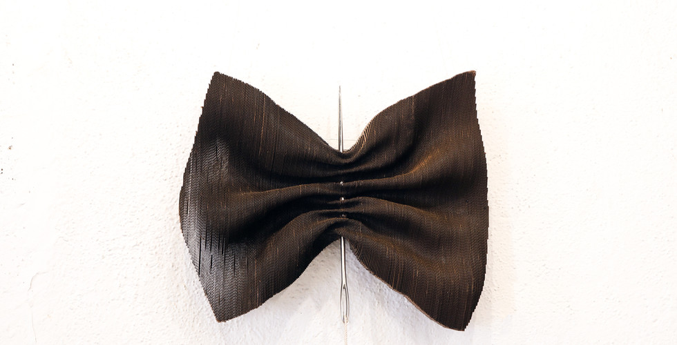 This philosophy is effectively reflected through her artwork. For example, in one of her wall mural works 'A Momentary Phase', she was heavily inspired by the way a caterpillar transforms into one of the most beautiful insects on our planet and how it makes the lifecycle of a butterfly, a display of evolutionary mechanism at work. This genesis of patterns on fabric begins with the interaction between the needle and the free flowing fabric. Bandana compares this momentary pain with a piece of cloth which undergoes through a transformation.