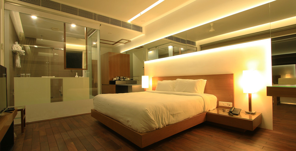 The C - shaped, double-storied villa along with the adjacent service block has a built-up area of 550 m2 on a 405 m2 property. It hosts four bedrooms with en suite baths, a common lobby, dining area, kitchen, pantry, laundry, Spa, entertainment area, and staff quarters. The rooms open out to a shimmering infinity pool that points to the vast view of the Vembanad Lake.