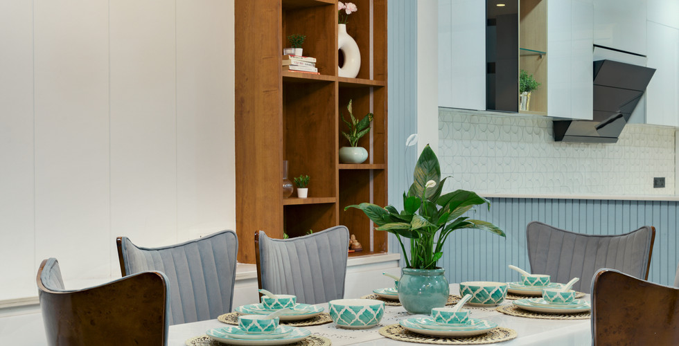 The dining area flows seamlessly into the living space, celebrating cherished family gatherings. “Every morning transforms into a shared ritual” Ayush notes, highlighting the design's adaptability for multi-generational living.