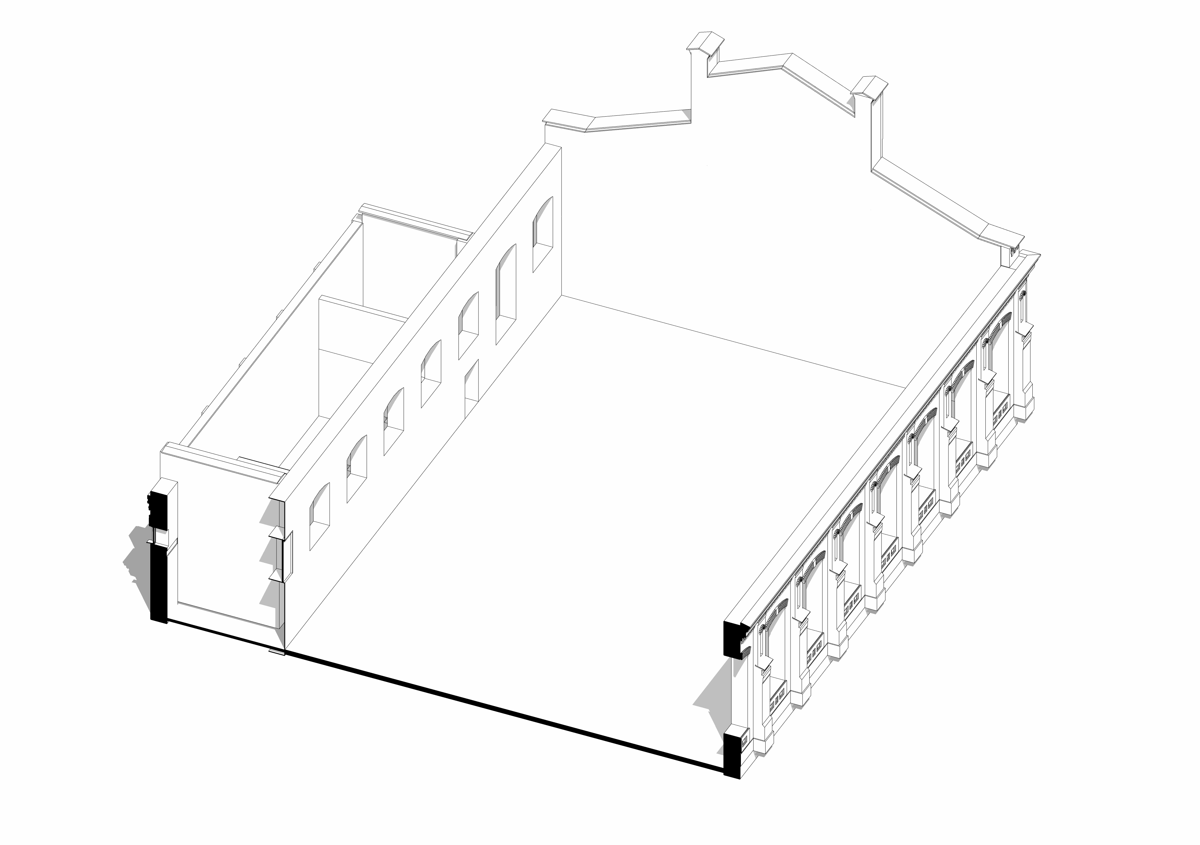 The geometry of the façade windows was left in its original appearance, confining restoration work to the mere replacement of the glass. The wall on the opposite side of the hall was completely bricked up, but during the project development it was reopened. Inserts in the walls, where the brickwork is different in layout and shape were left as reminders of the building’s rich past.