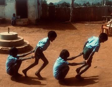 The children of Udagirinallapanahalli were enthusiastic in a mystical manner. Their jaw stretching smiles, and jumpy feet that were never off ground brings a realization that nothing keeps a child away from his play. So Manohara and friends were found running with the tyres, climbing the trees, playing chauka-bara in the village alleys; making us believe in Maria Montessori’s words, “play is the work of the child.” We decided to use just this as our trump card, as a probable solution for the rising problem of absenteeism in village schools. After all, 70% of India does reside in the village and as the Mahatma says, so does the future of India.