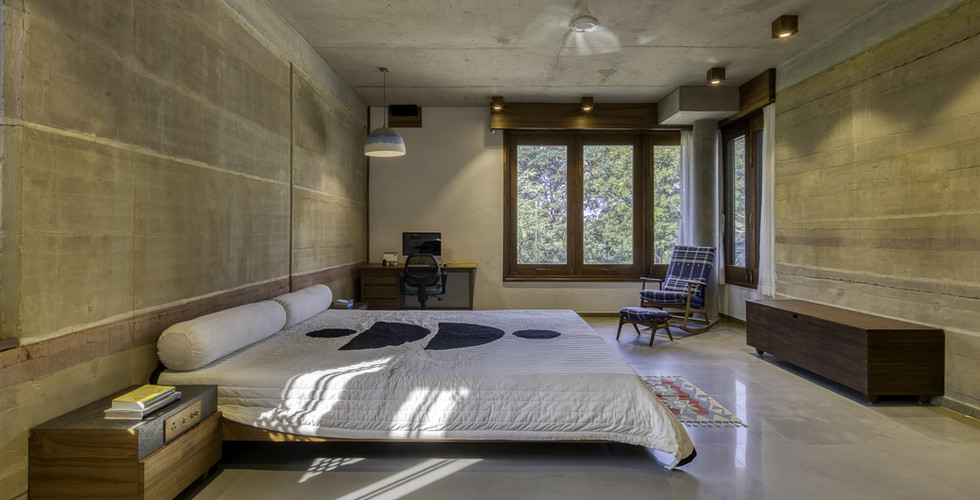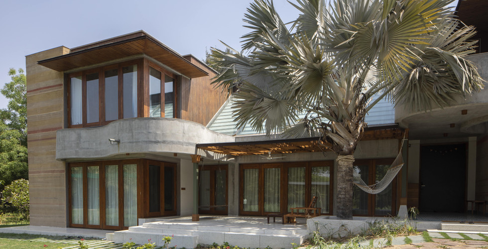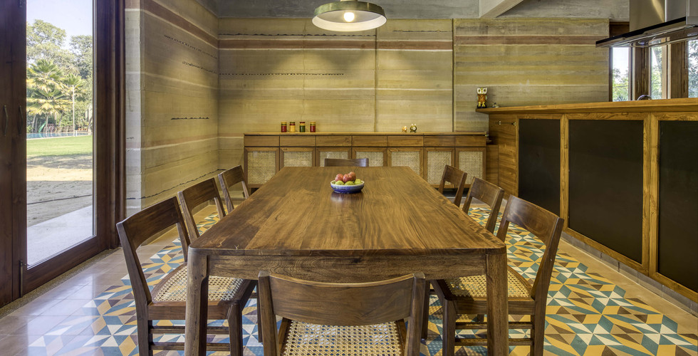 In villages, people often build their houses using mud. Bringing the same idea into mainstream architecture, they built structural walls for the house by ramming earth excavated from the site itself. The earth provides thermal insulation, reducing energy consumption as well.