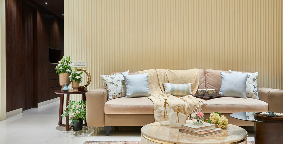 It is flushed with a myriad of earthytones and a sombre colour palette that infuses warmth and coziness into the home. The scheme presented a compact floor plan, which was the primary challenge. One approaches the central common area via the entrance foyer which further spreads out into the bedrooms, kitchen, and it's corresponding balcony. The design narrative aims to follow one's path into the home.